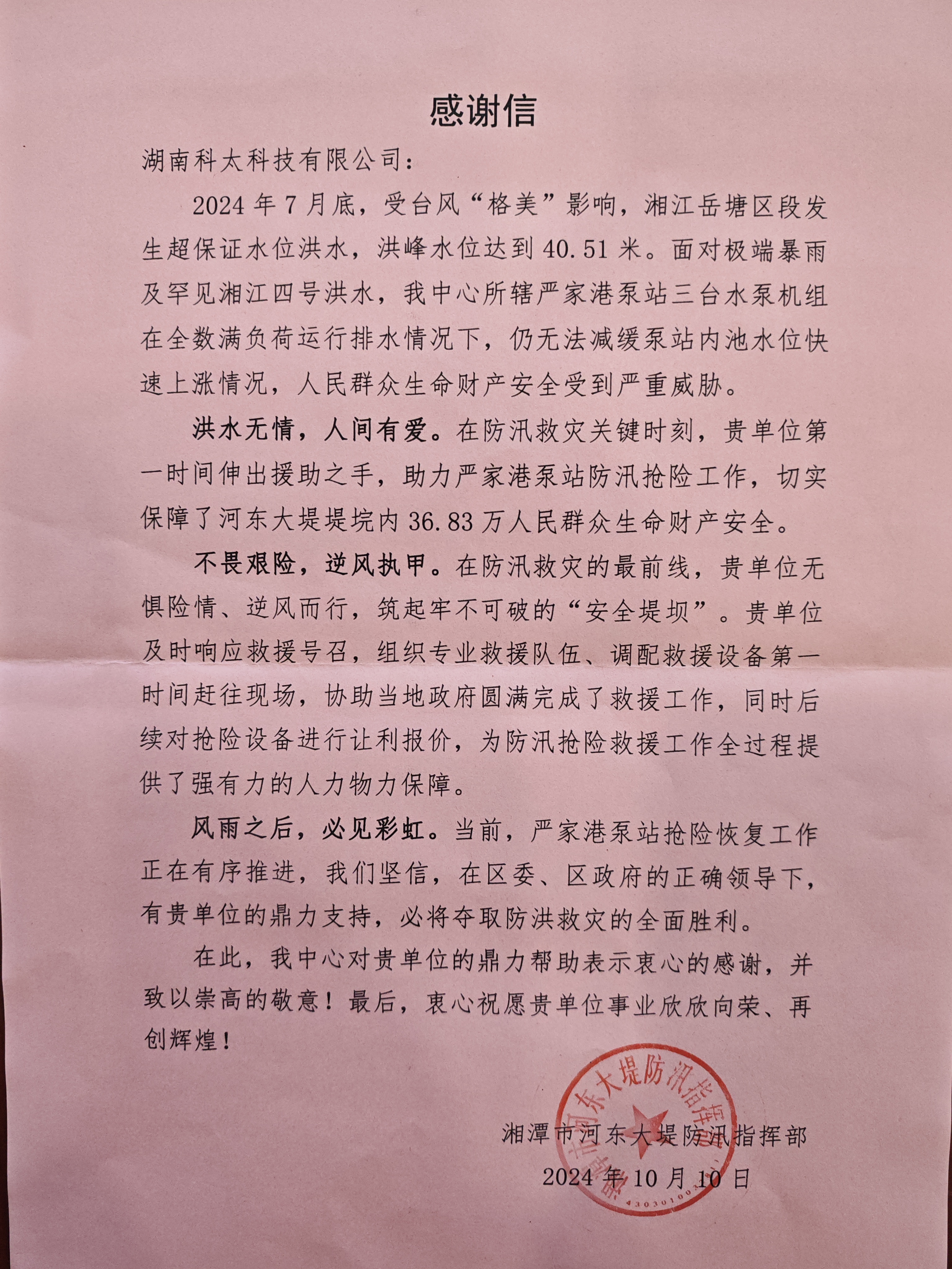 科太丨我公司榮獲湘潭市河東大堤防訊指揮部的表彰 發(fā)布時間:2024-11-07